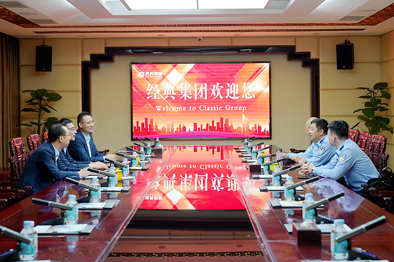 苗樹文對姜治洲一行的到訪表示熱烈歡迎,并對公安機關一直以來的關心支持以及為公司發展提供堅實的安全保障表示衷心感謝。下一步,經典集團將繼續強化管理水平,不斷升級優化硬件設施,保障企業和職工的安全,同時加大對職工的安全教育力度,增強員工的安全意識,為公安機關的工作提供最大程度的支持和配合,共同維護好轄區的治安秩序,也為我區經濟發展做出更大的貢獻。