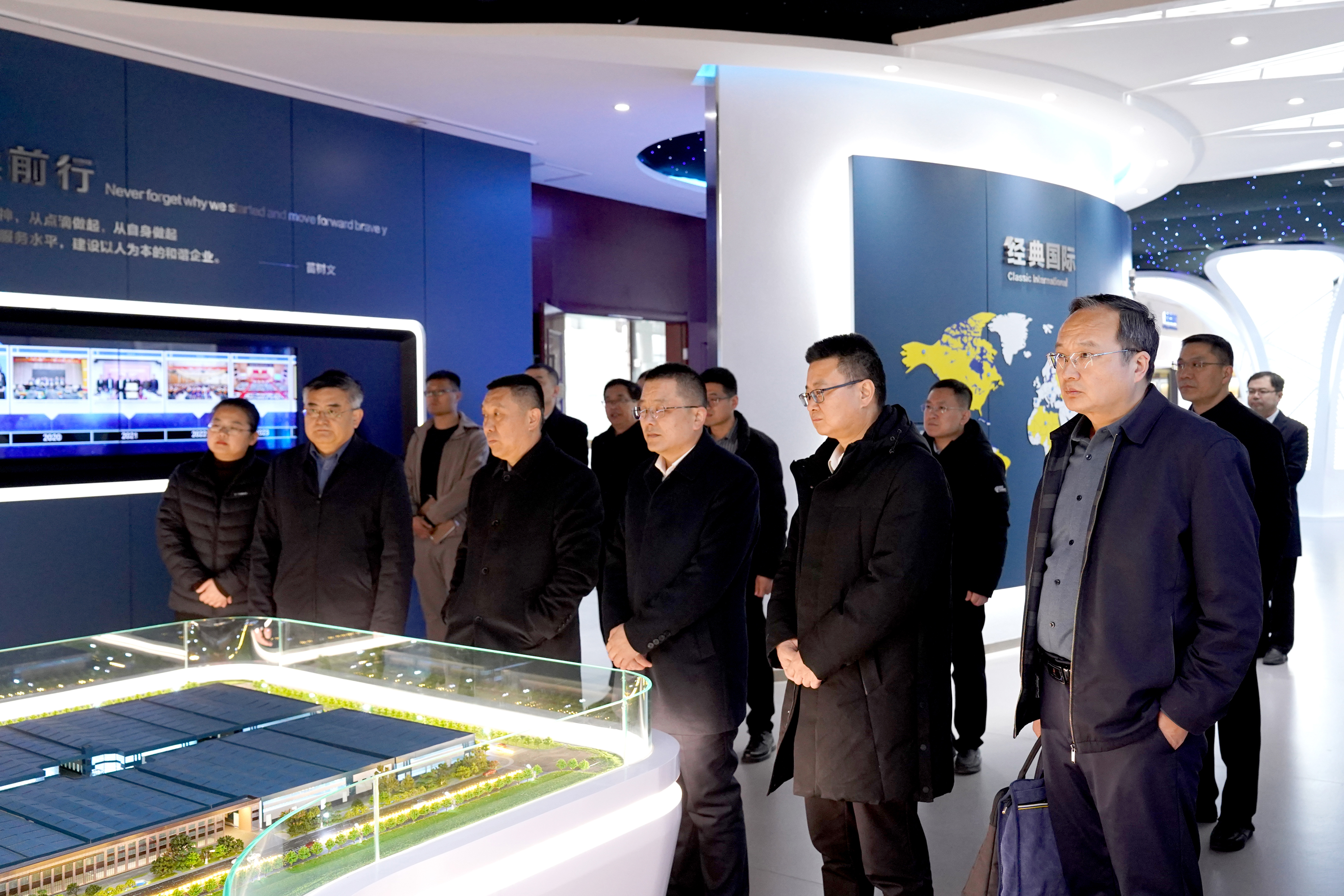 在集團(tuán)文化展館,史振華董事長(zhǎng)對(duì)濟(jì)寧學(xué)院領(lǐng)導(dǎo)的到來表示熱烈歡迎。仲紅波書記一行聽取了企業(yè)的發(fā)展歷程、文化建設(shè)、鋼結(jié)構(gòu)行業(yè)發(fā)展有關(guān)介紹,了解了企業(yè)的科技創(chuàng)新、產(chǎn)學(xué)研合作、人才引進(jìn)、科研平臺(tái)建設(shè)等情況。